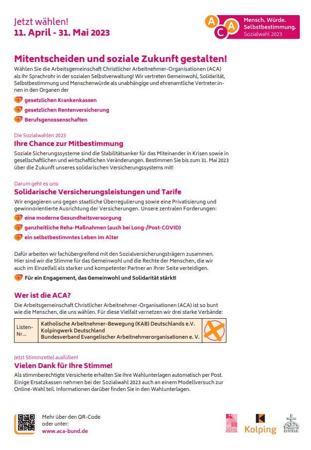 (Berlin, 18.1.2023) Die Sozialwahl 2023 steht vor der Tür. Am 31. Mai ist der Stichtag für die dreizehnten Sozialversicherungswahlen seit Bestehen der Bundesrepublik. Damit konstituieren sich auch die Verwaltungsräte – die Soziale Selbstverwaltung - bei den Ersatzkassen (TK, BARMER, DAK-Gesundheit, KKH Kaufmännische Krankenkasse, hkk – Handelskrankenkasse, HEK – Hanseatische Krankenkasse) neu. Allein bei den Ersatzkassen werden ab April 2023 rund 22 Millionen wahlberechtige Versicherte aufgefordert, ihre Stimme für ihre ehrenamtlichen Vertreterinnen und Vertreter in den sogenannten Versichertenparlamenten abzugeben. Informationen zu den bevorstehenden Wahlen bei den Ersatzkassen und der Deutschen Rentenversicherung (DRV) Bund sind auf www.sozialwahl.de zu finden.